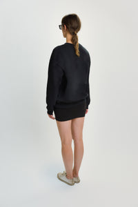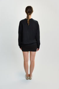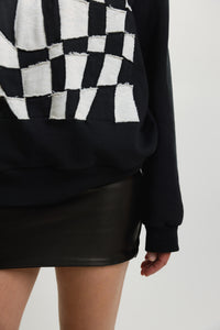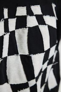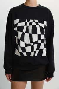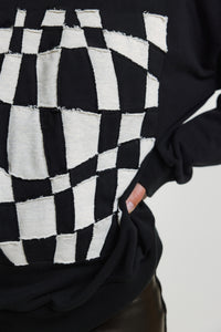 Our rendition of the relaxed silhouette cotton pullover, with a frontal woven design, draws inspiration, primarily from Op Art. Delving into depth perception and the aspiration to infuse two-dimensional planes with a sense of three-dimensionality through the use of a weaving technique.