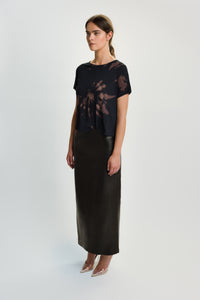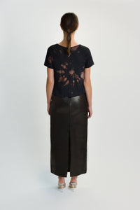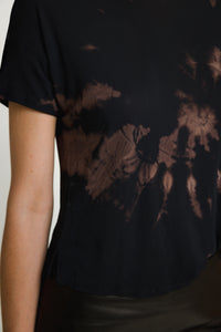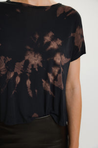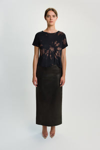 An essential building block to a timeless wardrobe. The boxy silhoutte perfectly balanced by the fluid drape of rayon make this black crew neck tee intrinsically relaxed, yet elevated.