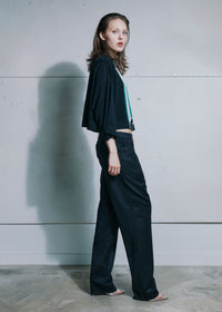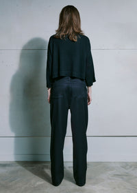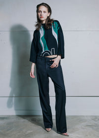 Boxy mock neck sweater. This wool-silk blend sweater combines an easy silhouette with striking artwork. The hand motif speaks to the casual invasions of women's physical space—uninvited touches or the expectation of constant availability.
