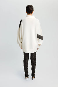 - Body 100% Italian cashmere Contrast appliqué 76% Recycled Nylon, 24% Recycled Polyester