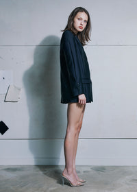 Sculpted shoulders offset by a deep V-neck, this chic and powerful blazer strikes the perfect balance between relaxed and structured, effortlessly elevating any look.
